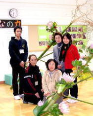 いけばな教室の生徒と、すまいるスクールの先生が
