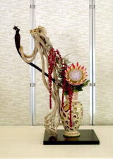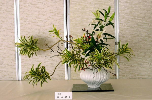 花材: ドラセナ・ ソングオブインディアナ 緋木瓜 オリエンタルリリー