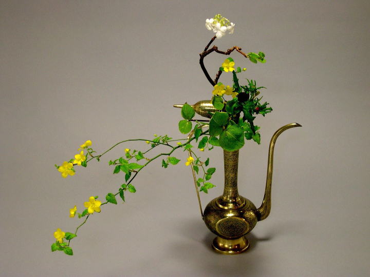 花材: 山吹 虫狩り あざみ